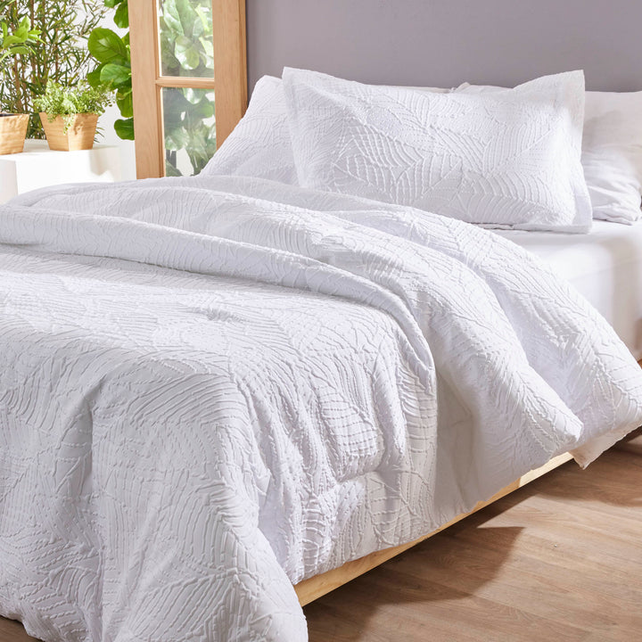 Edredón Comforter Microfibra color blanco. Este edredón cuenta con un relleno de fibra siliconada que proporciona suavidad y calidez. Creado para renovar tu habitación con su estilo único.