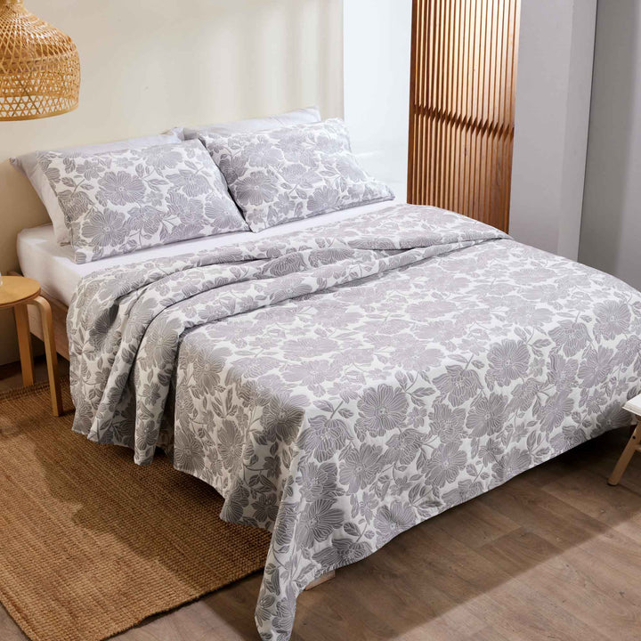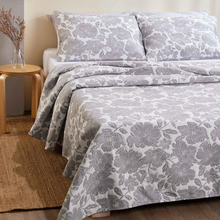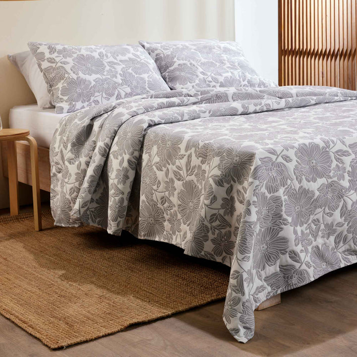 Lo que hace único al modelo Lassi es su técnica de confección en positivo y negativo. A diferencia de los estampados tradicionales, el diseño floral de este edredón se crea a través de la estructura del tejido. Esto permite que la pieza sea auténticamente doble faz: por un lado, disfrutarás de un fondo luminoso con flores en contraste, y al girarlo, los colores se invierten para ofrecer una atmósfera más íntima y acogedora. Tienes dos looks sofisticados en un solo producto.