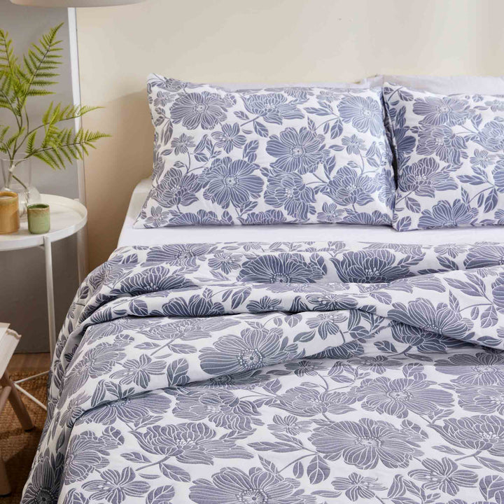 Lo que hace único al modelo Lassi es su técnica de confección en positivo y negativo. A diferencia de los estampados tradicionales, el diseño floral de este edredón se crea a través de la estructura del tejido. Esto permite que la pieza sea auténticamente doble faz: por un lado, disfrutarás de un fondo luminoso con flores en contraste, y al girarlo, los colores se invierten para ofrecer una atmósfera más íntima y acogedora. Tienes dos looks sofisticados en un solo producto.