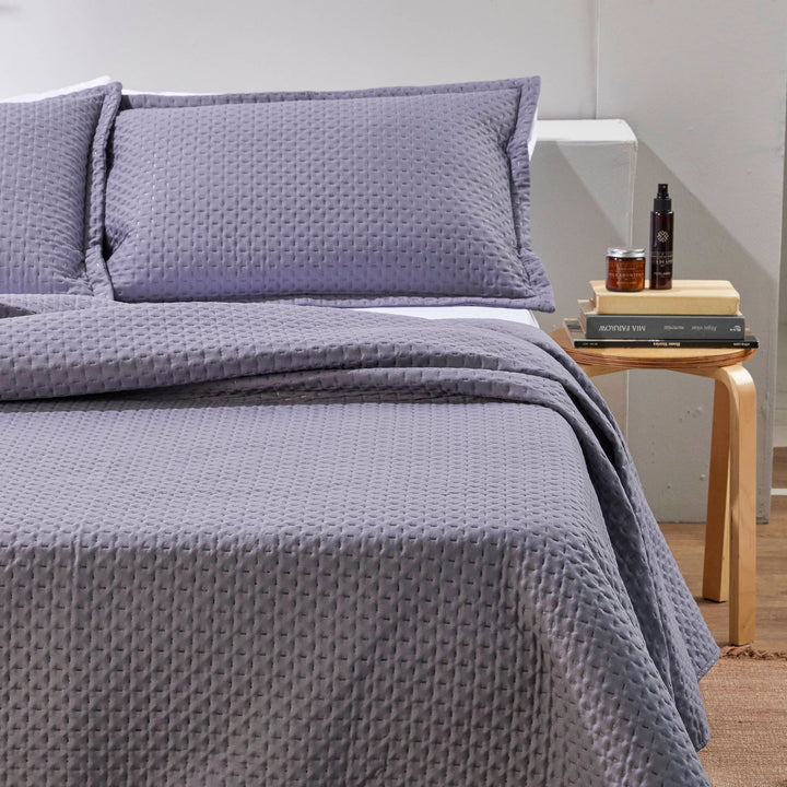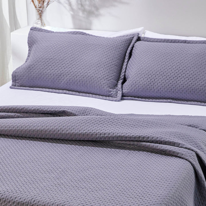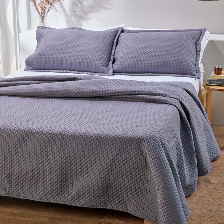 Edredón Quilt Microfibra color Gris. Este edredón cuenta con un relleno de fibra siliconada que proporciona suavidad y calidez. Creado para renovar tu habitación con su estilo único.