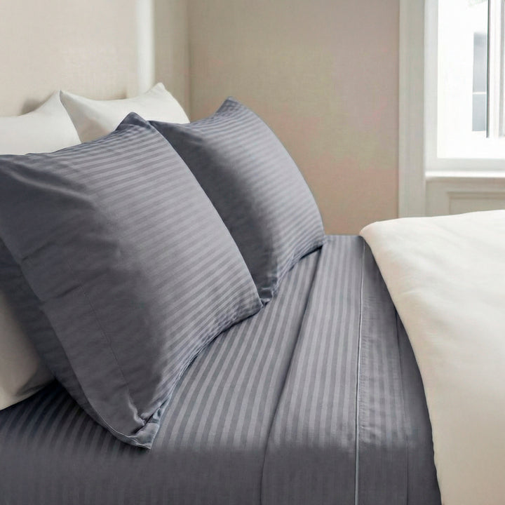Juego de Sábanas 250 Hilos Diseño a Rayas 50% Algodón 50% Poliéster Gris Oscuro