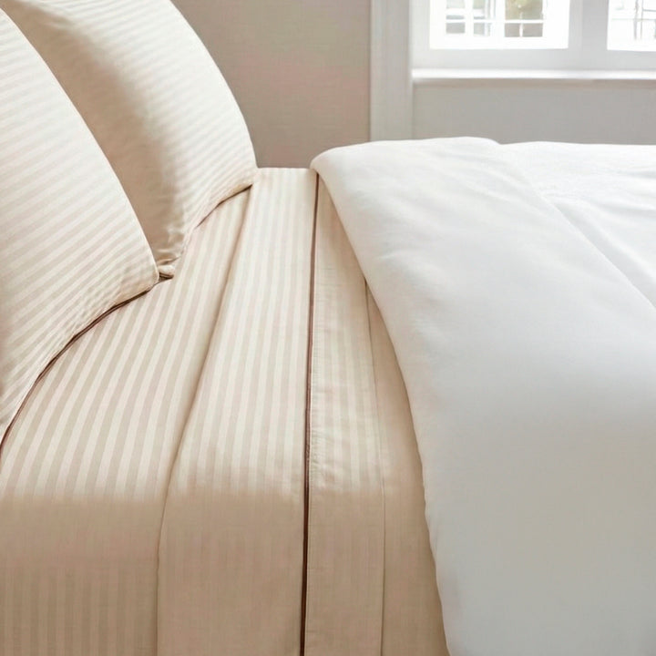 Juego de Sábanas 250 Hilos Diseño a Rayas 50% Algodón 50% Poliéster Marfil