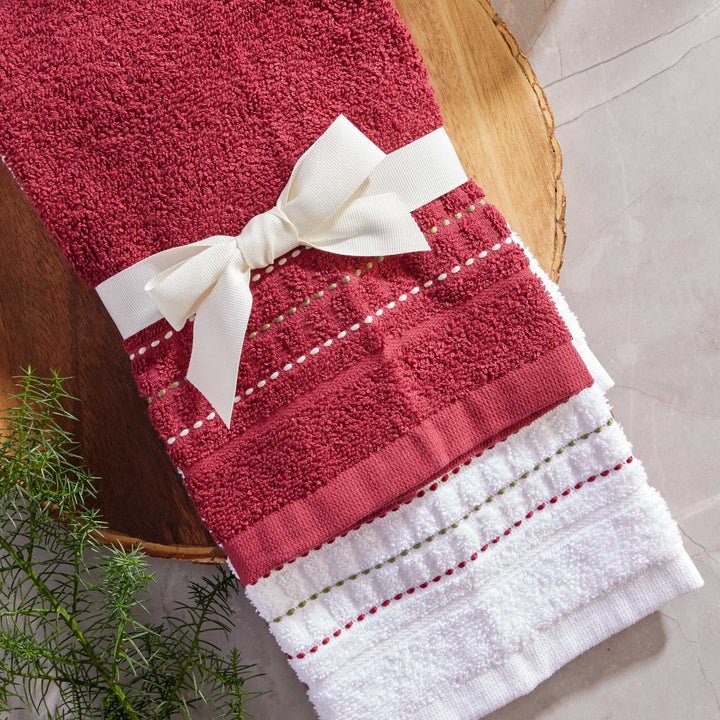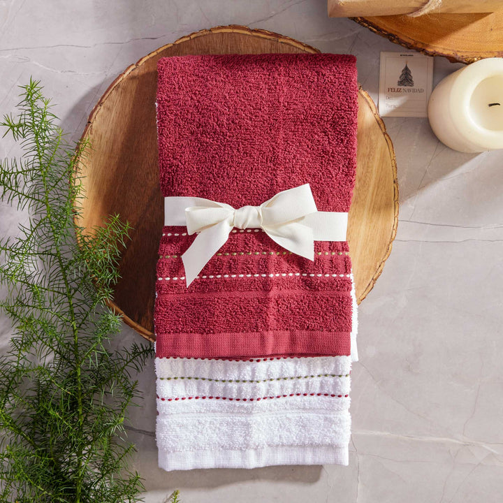 Juego x 2 Toallas de Manos Oropel 40x70 cm 400gr Blanco/Rojo
