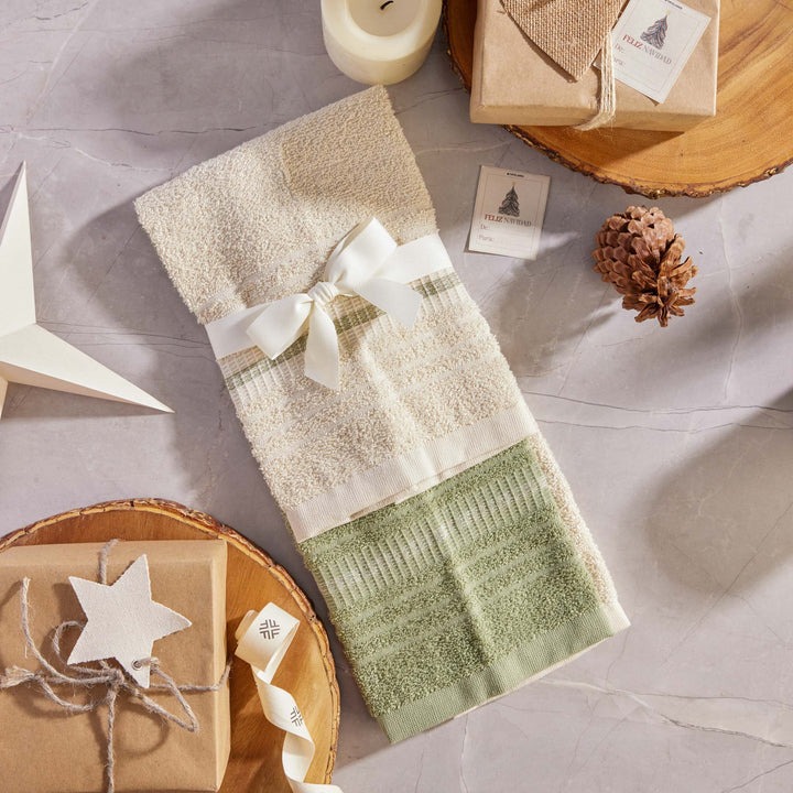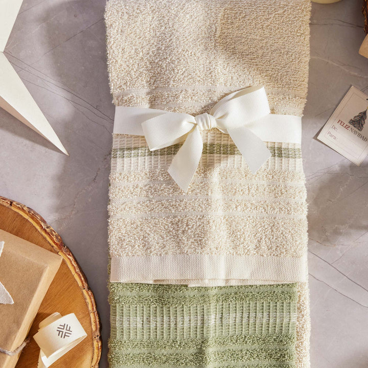 Juego x 2 Toallas de Manos Teyuna 40x70 cm 400gr Crema/Verde