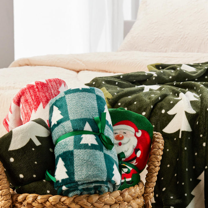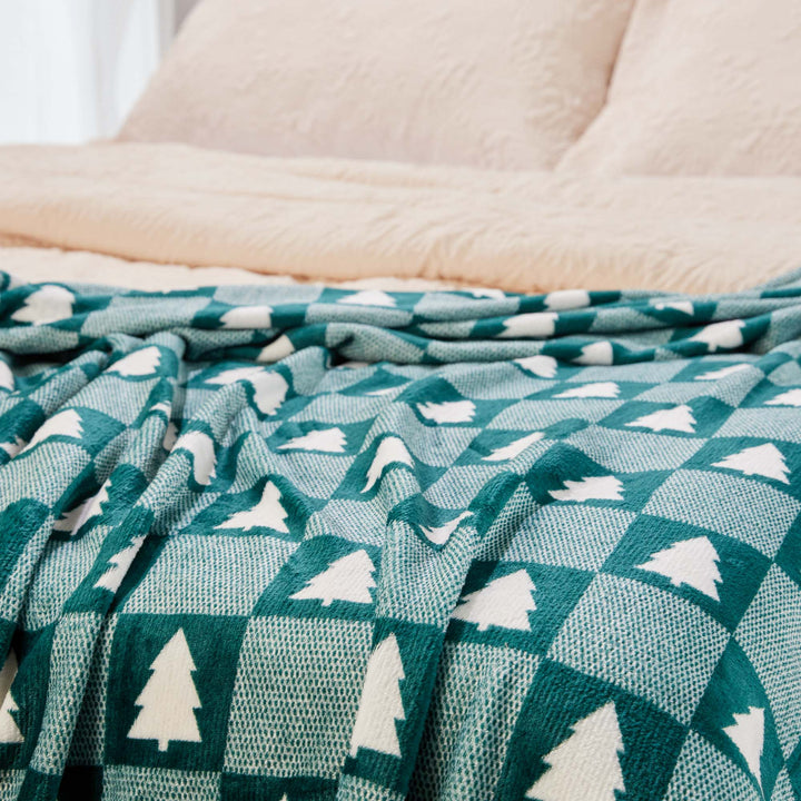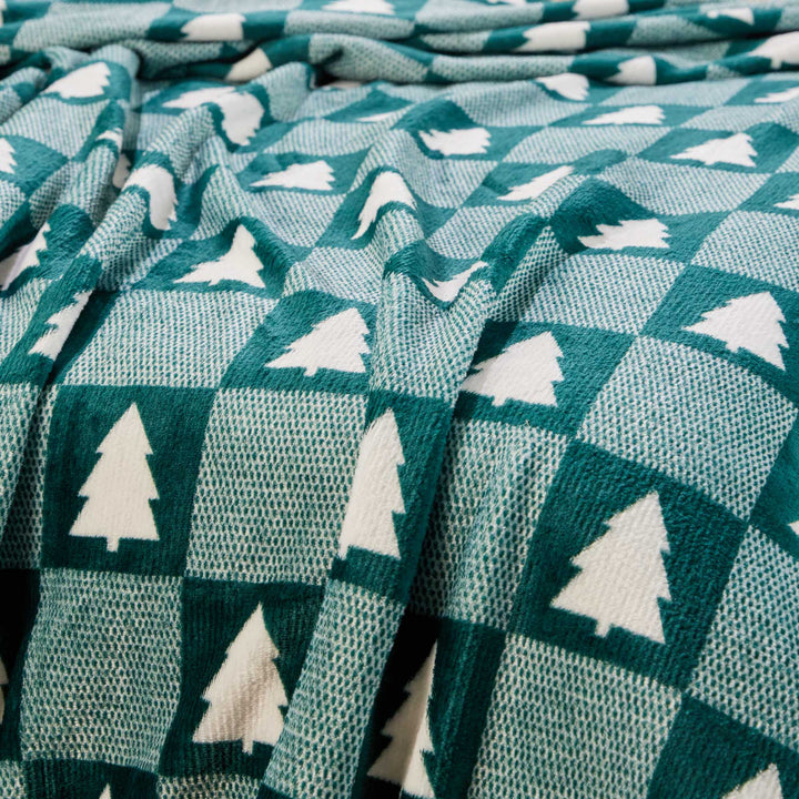 Manta Navideña Flannel Pinos 130x150 cm Blanco/Verde