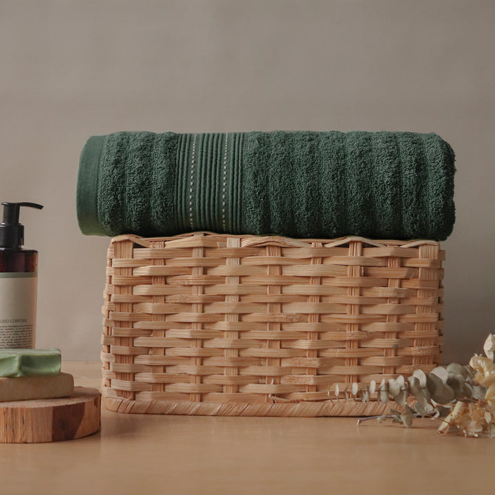 Toalla de cuerpo Cáñamo de 70x140cm y 500gr color verde botella, hecha en Colombia, que te brinda mayor suavidad y absorción de humedad gracias a su composición de 100% algodón.